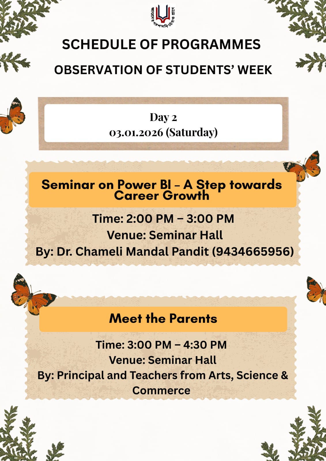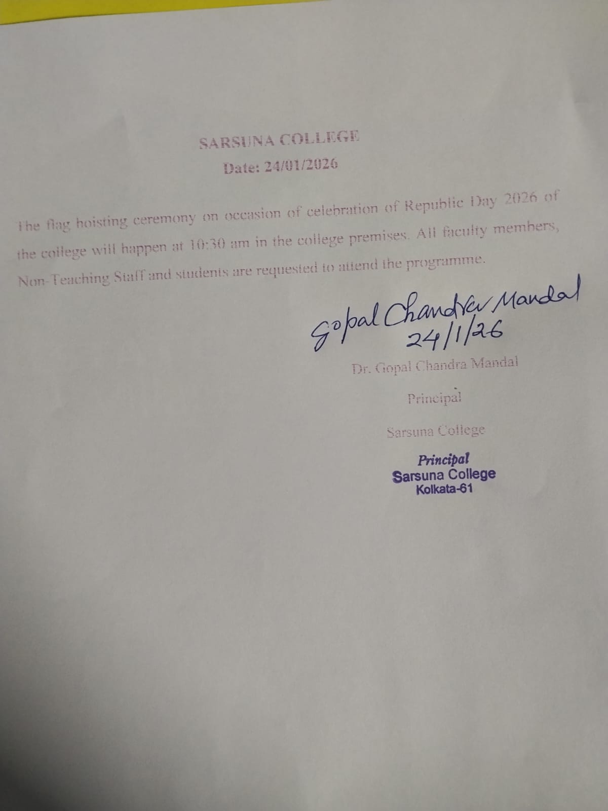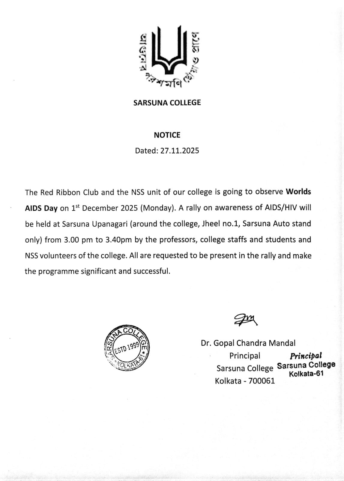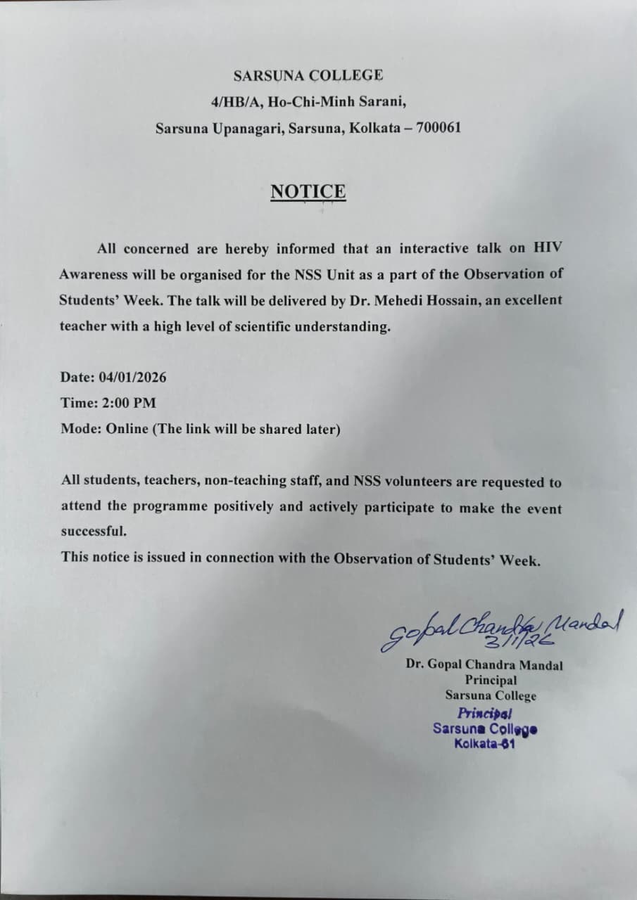 Sarsuna College, the brain child of some intellectuals who came forward to give a concrete shape to the hopes and aspirations of local common people is sprouting new branches and spreading itself to new area of higher education day by day. I am proud to be part of its glorious existence. In the constant changing of teaching- learning through its consistently good University examination results, rich infrastructure and a beautiful and congenial academic atmosphere....