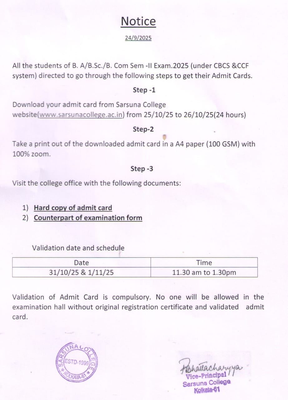 Sarsuna College has been affiliated to the University of Calcutta, Kolkata since 2000.