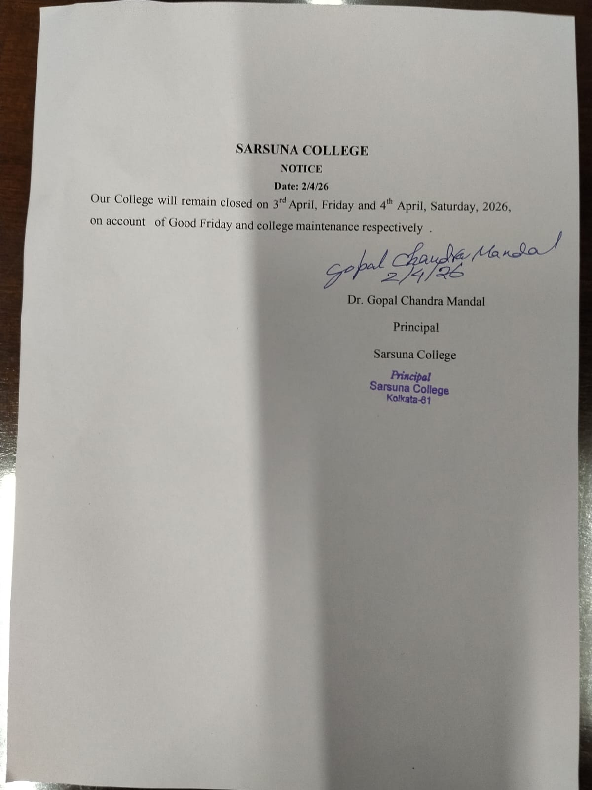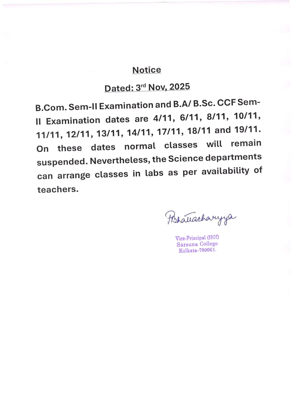 Sarsuna College, the brain child of some intellectuals who came forward to give a concrete shape to the hopes and aspirations of local common people is sprouting new branches and spreading itself to new area of higher education day by day. I am proud to be part of its glorious existence. In the constant changing of teaching- learning through its consistently good University examination results, rich infrastructure and a beautiful and congenial academic atmosphere....