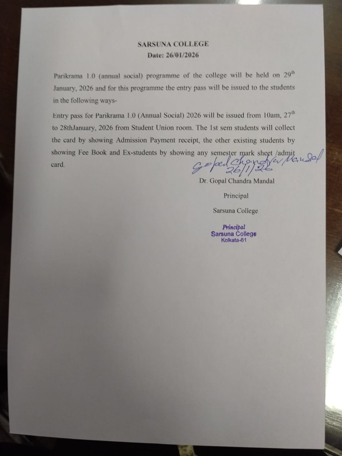 Sarsuna College, the brain child of some intellectuals who came forward to give a concrete shape to the hopes and aspirations of local common people is sprouting new branches and spreading itself to new area of higher education day by day. I am proud to be part of its glorious existence. In the constant changing of teaching- learning through its consistently good University examination results, rich infrastructure and a beautiful and congenial academic atmosphere....