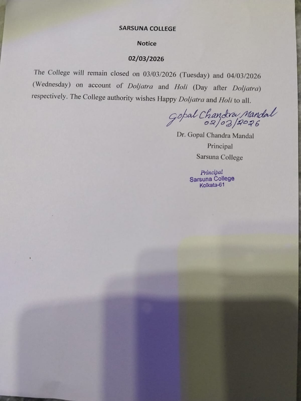 Sarsuna College, the brain child of some intellectuals who came forward to give a concrete shape to the hopes and aspirations of local common people is sprouting new branches and spreading itself to new area of higher education day by day. I am proud to be part of its glorious existence. In the constant changing of teaching- learning through its consistently good University examination results, rich infrastructure and a beautiful and congenial academic atmosphere....