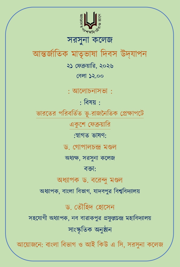 Sarsuna College, the brain child of some intellectuals who came forward to give a concrete shape to the hopes and aspirations of local common people is sprouting new branches and spreading itself to new area of higher education day by day. I am proud to be part of its glorious existence. In the constant changing of teaching- learning through its consistently good University examination results, rich infrastructure and a beautiful and congenial academic atmosphere....