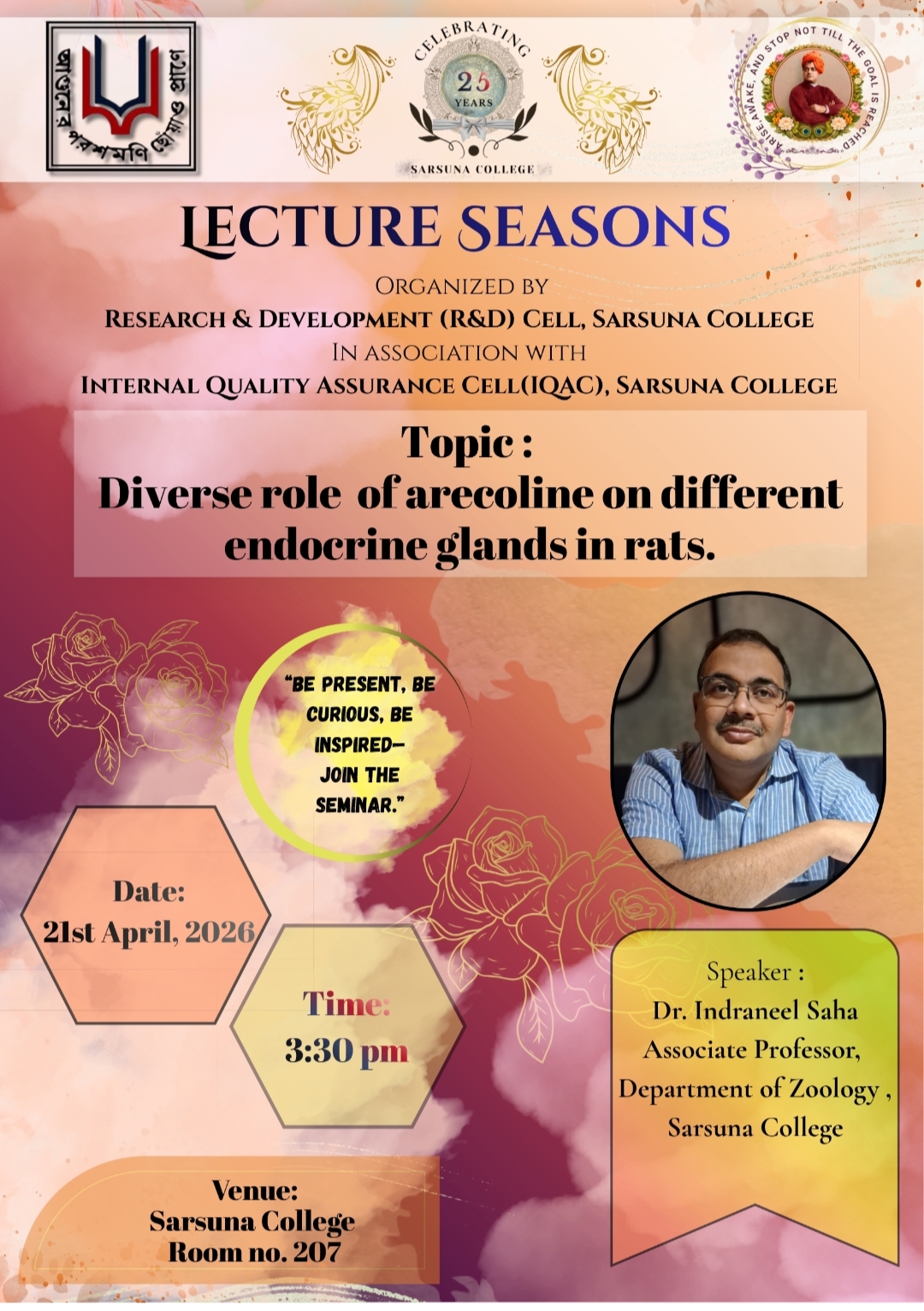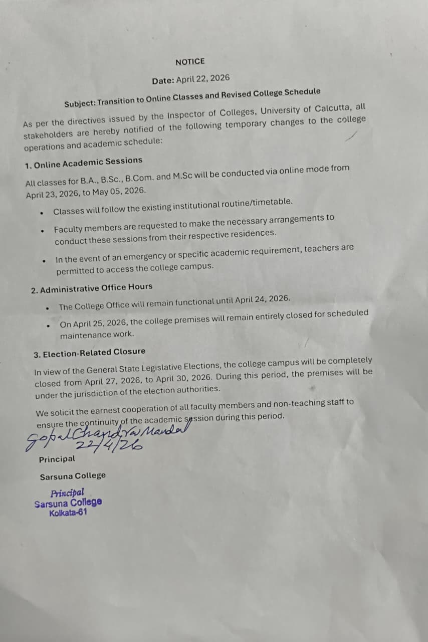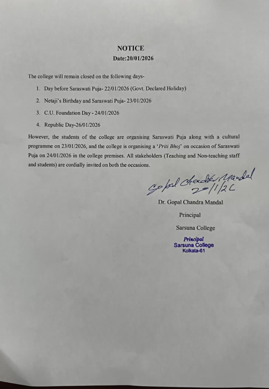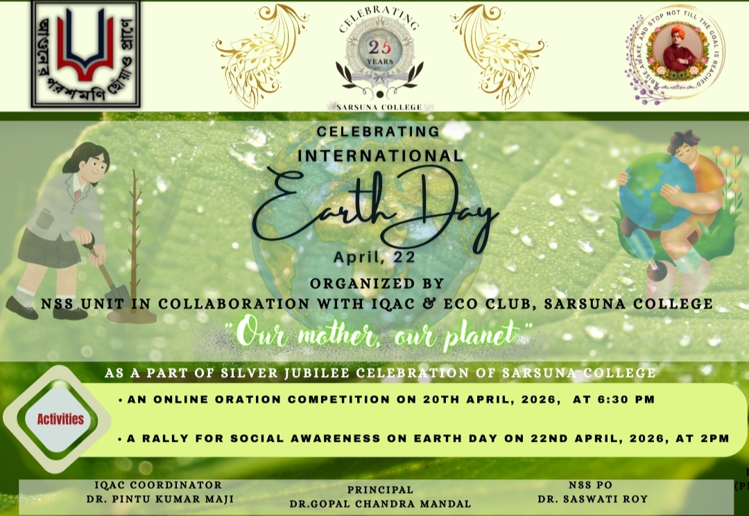 Sarsuna College, the brain child of some intellectuals who came forward to give a concrete shape to the hopes and aspirations of local common people is sprouting new branches and spreading itself to new area of higher education day by day. I am proud to be part of its glorious existence. In the constant changing of teaching- learning through its consistently good University examination results, rich infrastructure and a beautiful and congenial academic atmosphere....