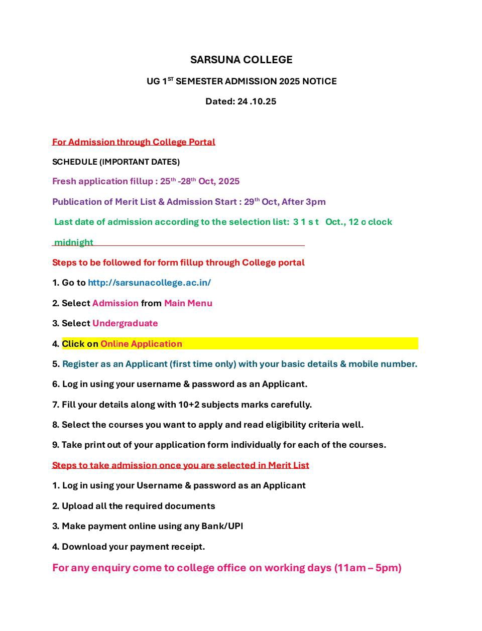 Sarsuna College has been affiliated to the University of Calcutta, Kolkata since 2000.