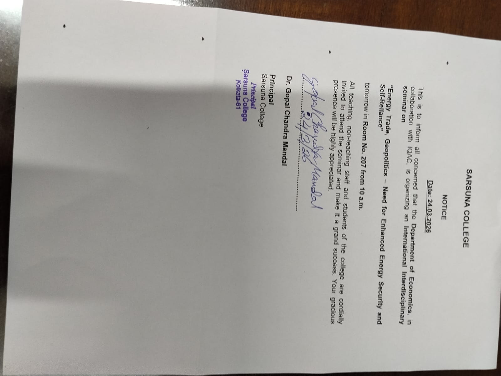 Sarsuna College, the brain child of some intellectuals who came forward to give a concrete shape to the hopes and aspirations of local common people is sprouting new branches and spreading itself to new area of higher education day by day. I am proud to be part of its glorious existence. In the constant changing of teaching- learning through its consistently good University examination results, rich infrastructure and a beautiful and congenial academic atmosphere....