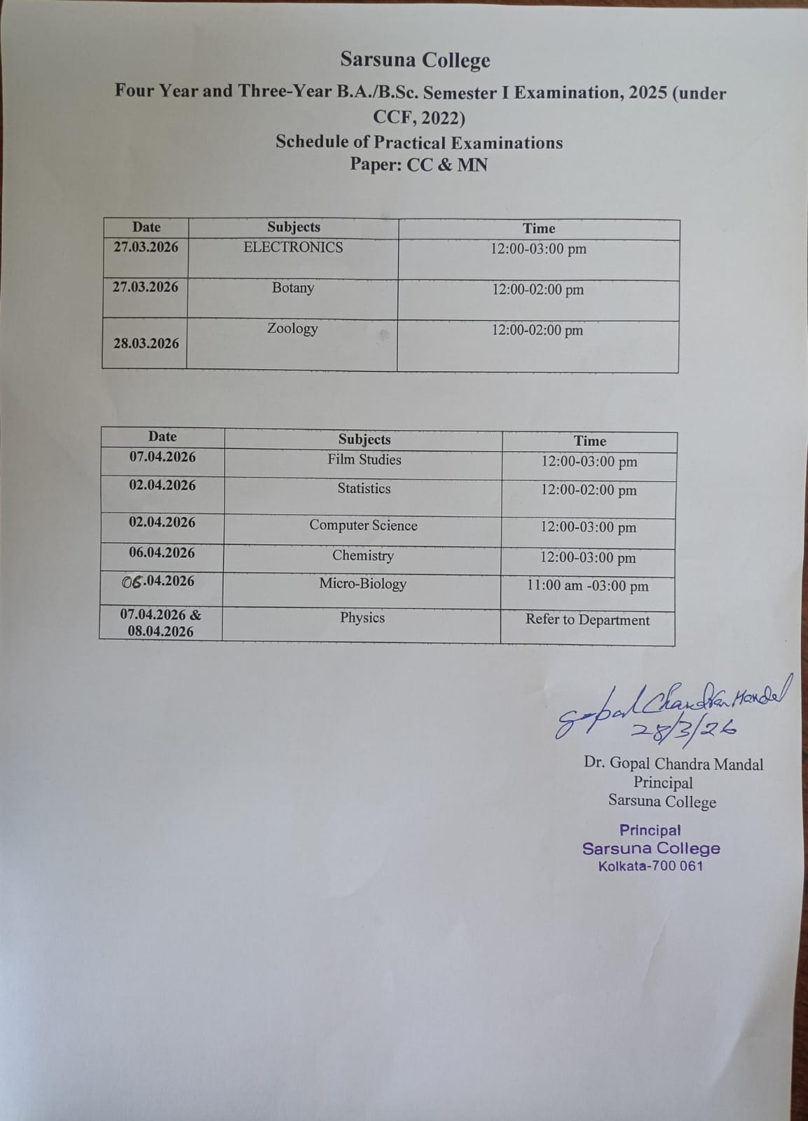 Sarsuna College has been affiliated to the University of Calcutta, Kolkata since 2000.