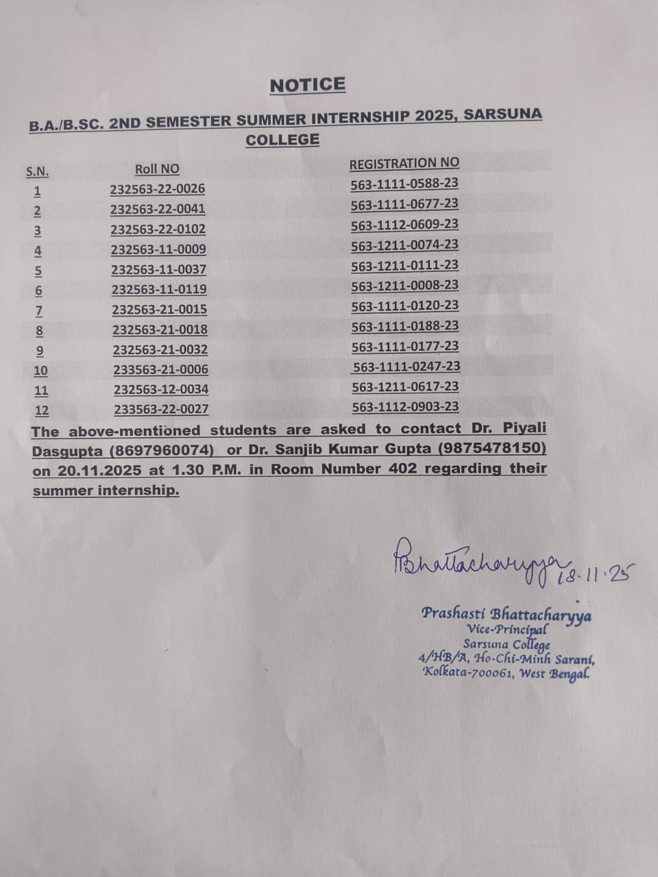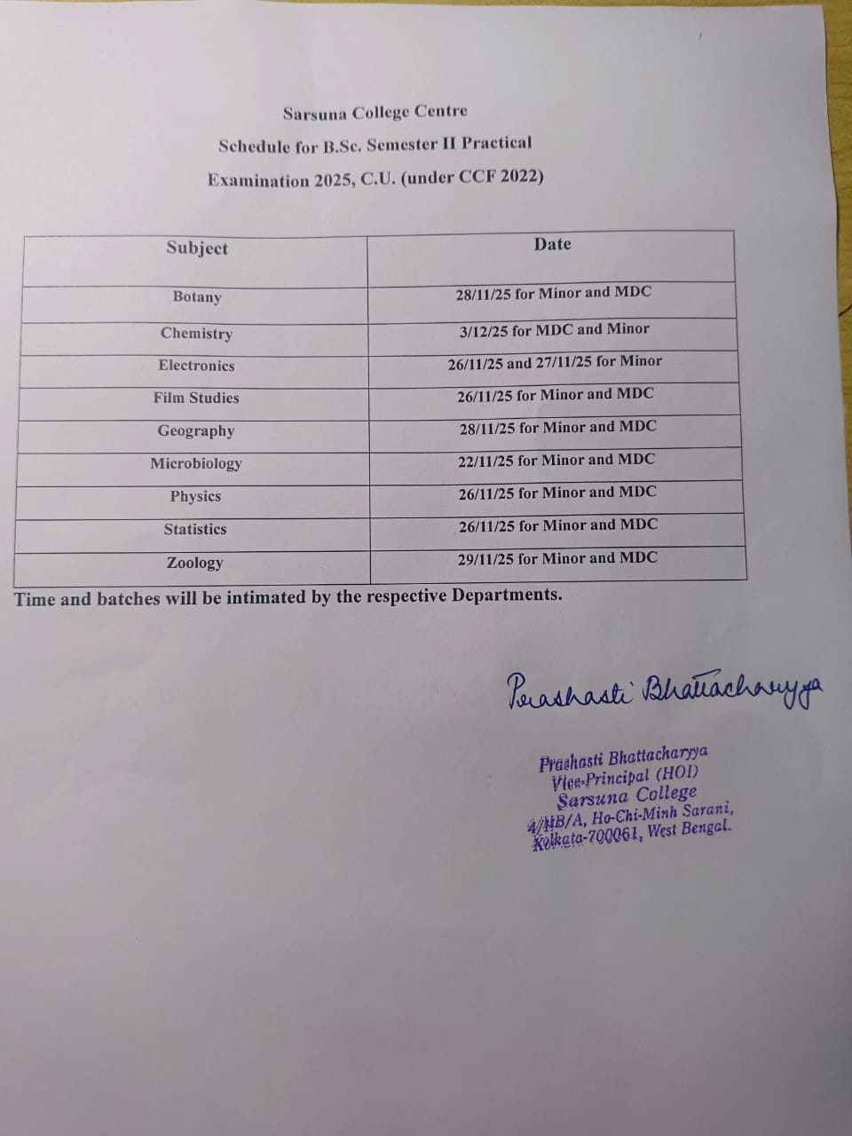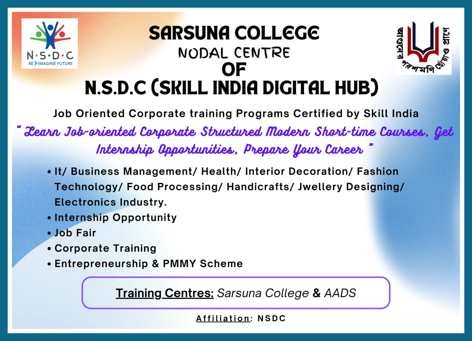 Sarsuna College has been affiliated to the University of Calcutta, Kolkata since 2000.