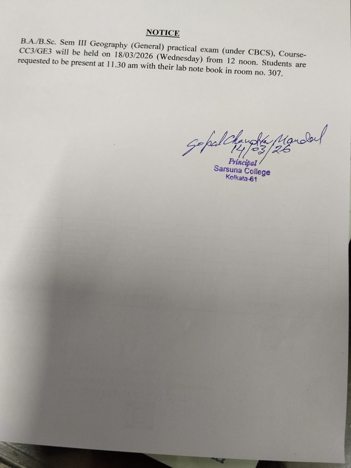 Sarsuna College has been affiliated to the University of Calcutta, Kolkata since 2000.
