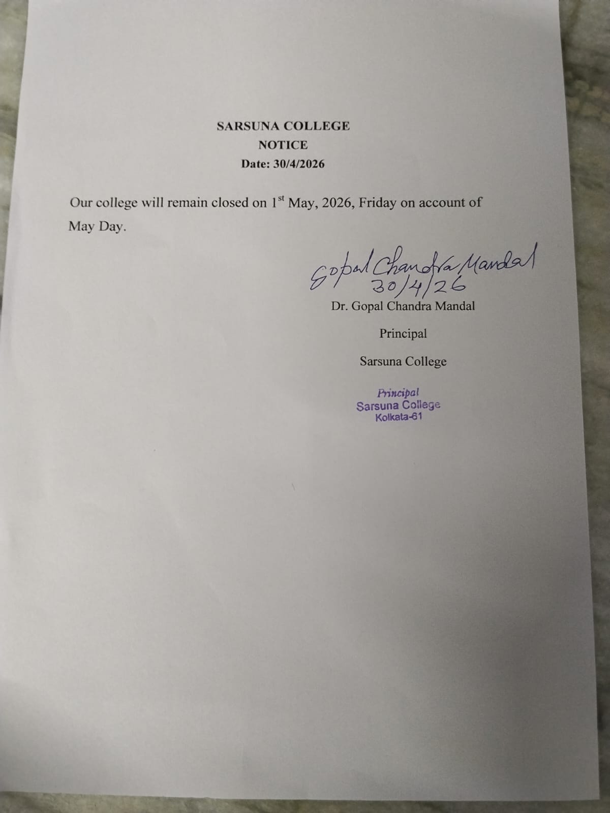 Sarsuna College, the brain child of some intellectuals who came forward to give a concrete shape to the hopes and aspirations of local common people is sprouting new branches and spreading itself to new area of higher education day by day. I am proud to be part of its glorious existence. In the constant changing of teaching- learning through its consistently good University examination results, rich infrastructure and a beautiful and congenial academic atmosphere....
