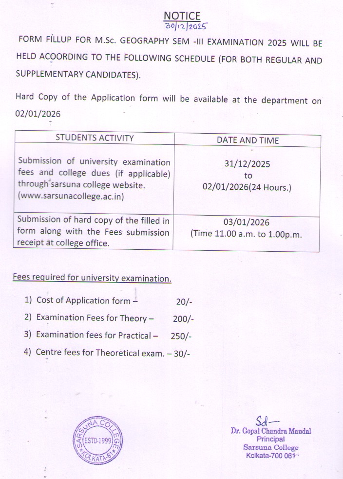 Sarsuna College, the brain child of some intellectuals who came forward to give a concrete shape to the hopes and aspirations of local common people is sprouting new branches and spreading itself to new area of higher education day by day. I am proud to be part of its glorious existence. In the constant changing of teaching- learning through its consistently good University examination results, rich infrastructure and a beautiful and congenial academic atmosphere....