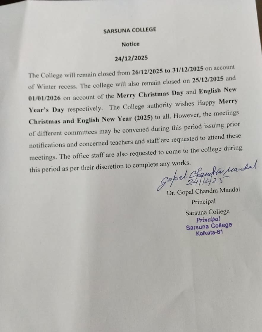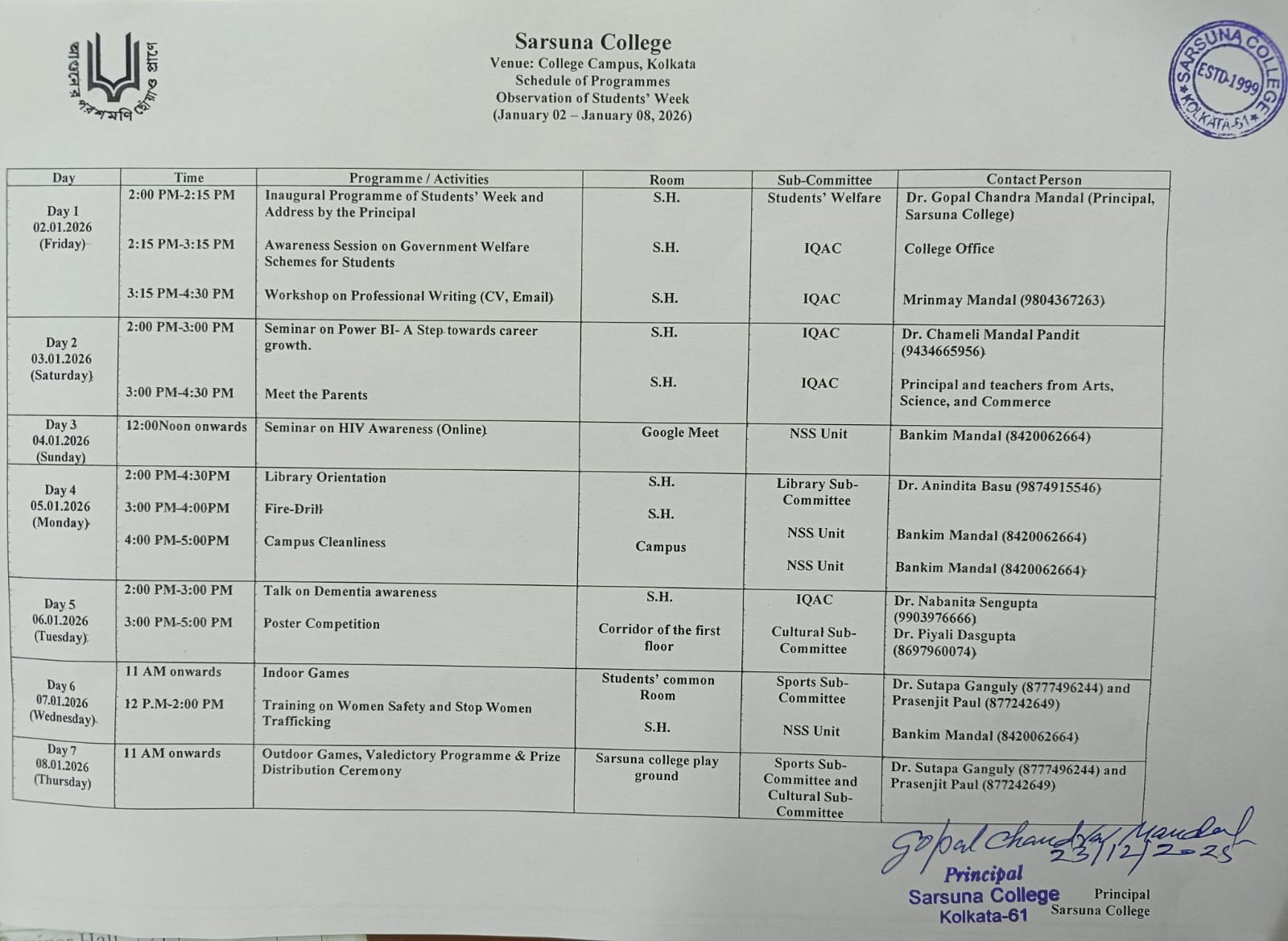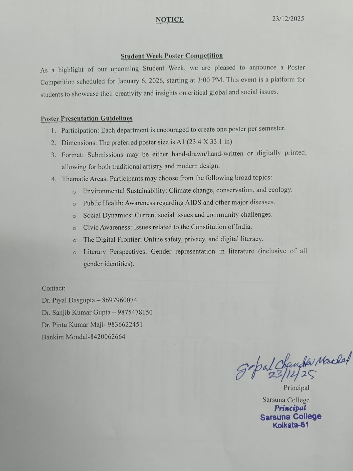 Sarsuna College, the brain child of some intellectuals who came forward to give a concrete shape to the hopes and aspirations of local common people is sprouting new branches and spreading itself to new area of higher education day by day. I am proud to be part of its glorious existence. In the constant changing of teaching- learning through its consistently good University examination results, rich infrastructure and a beautiful and congenial academic atmosphere....