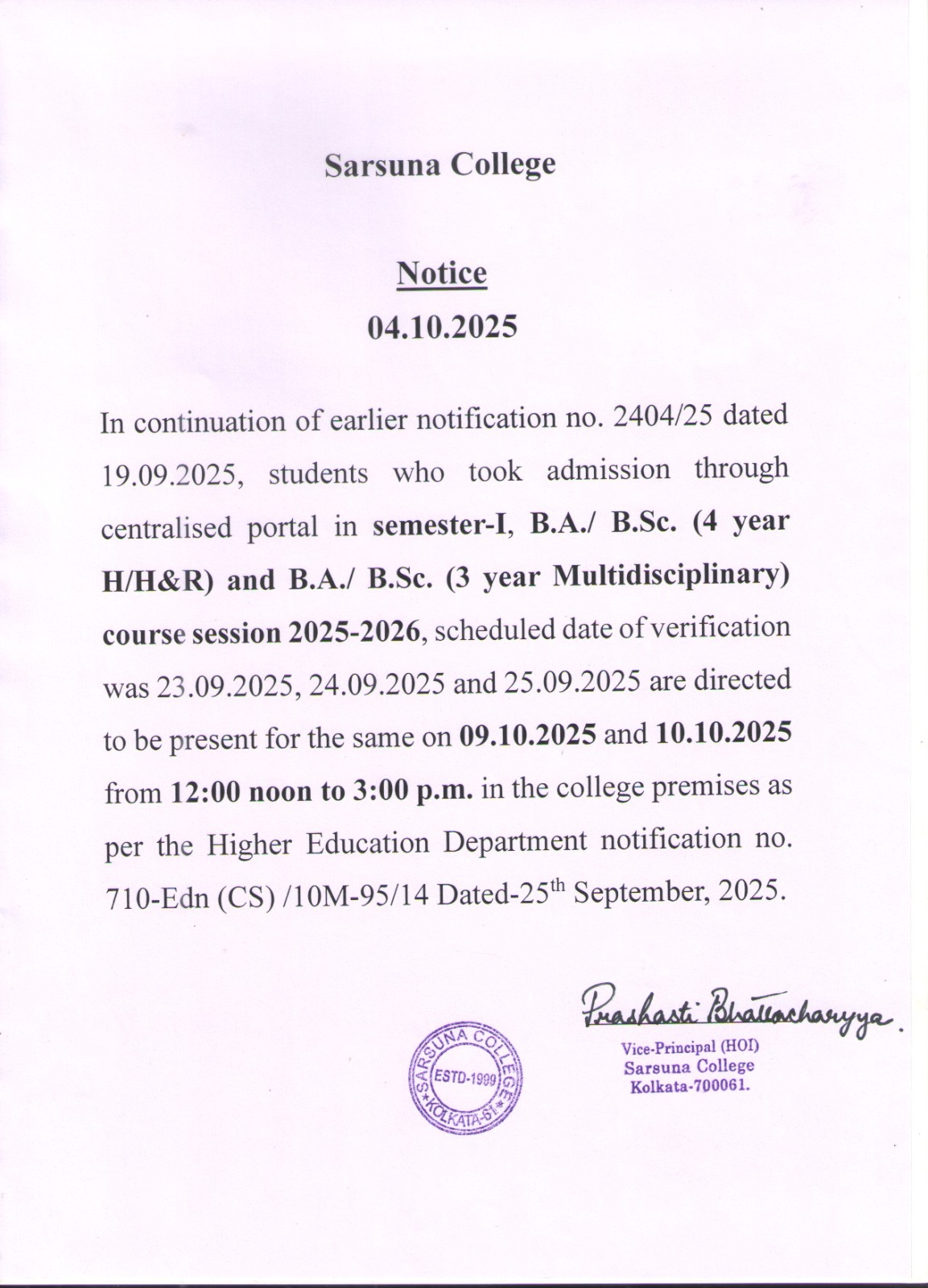 Sarsuna College has been affiliated to the University of Calcutta, Kolkata since 2000.