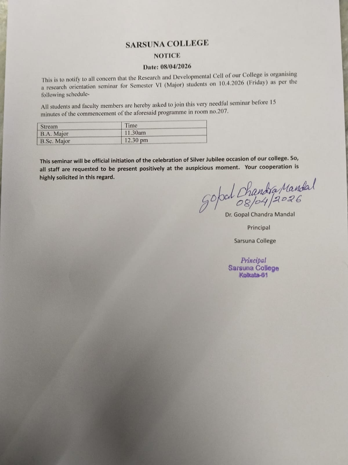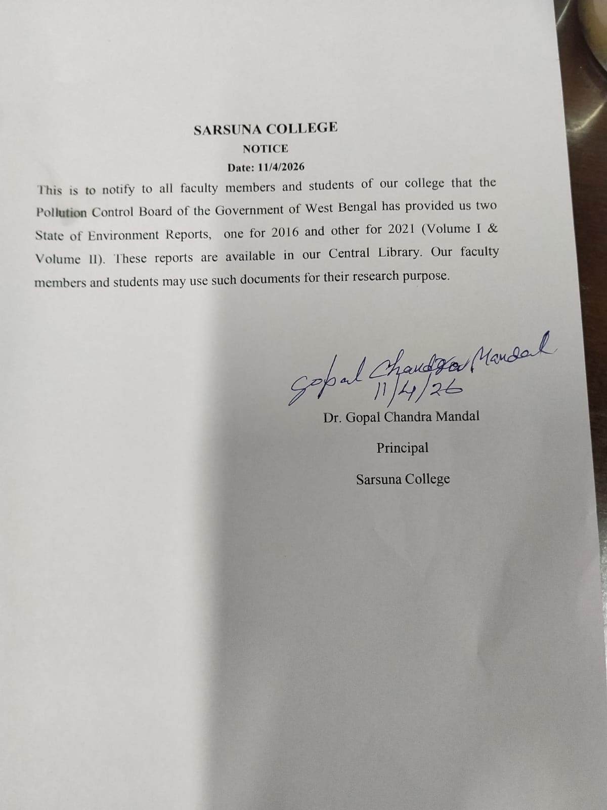 Sarsuna College, the brain child of some intellectuals who came forward to give a concrete shape to the hopes and aspirations of local common people is sprouting new branches and spreading itself to new area of higher education day by day. I am proud to be part of its glorious existence. In the constant changing of teaching- learning through its consistently good University examination results, rich infrastructure and a beautiful and congenial academic atmosphere....