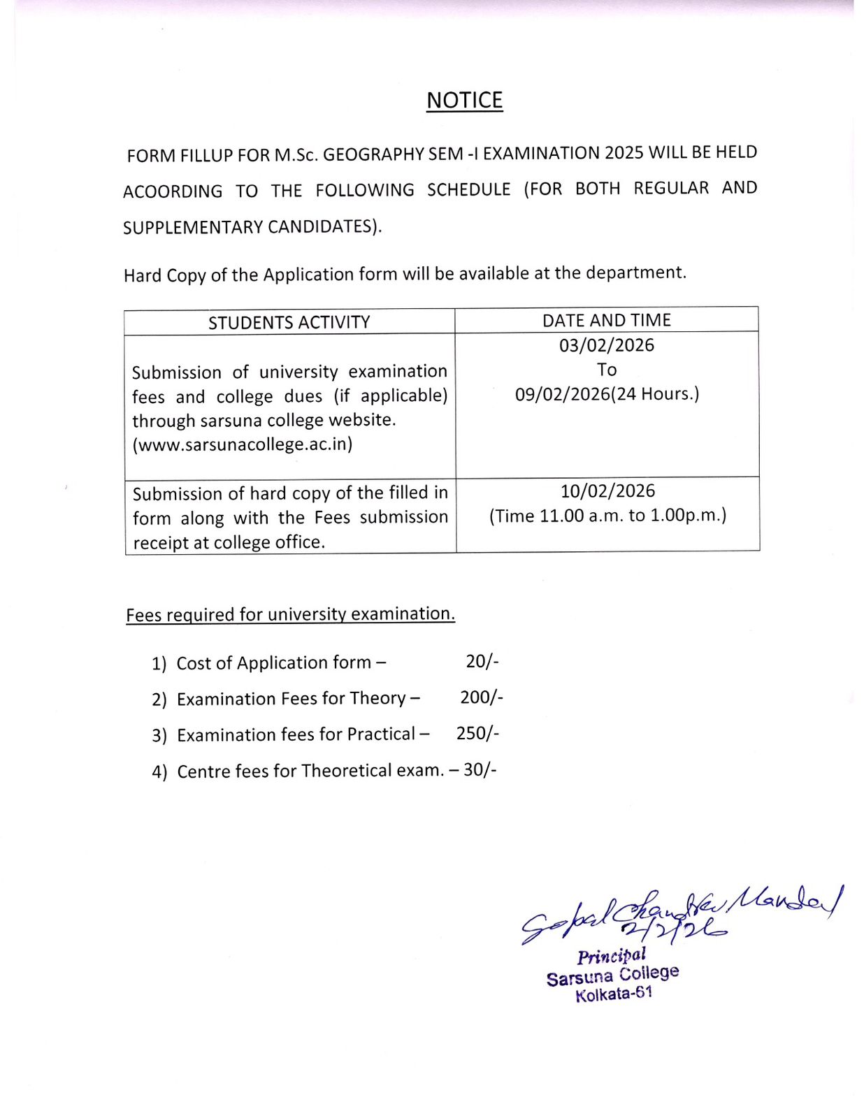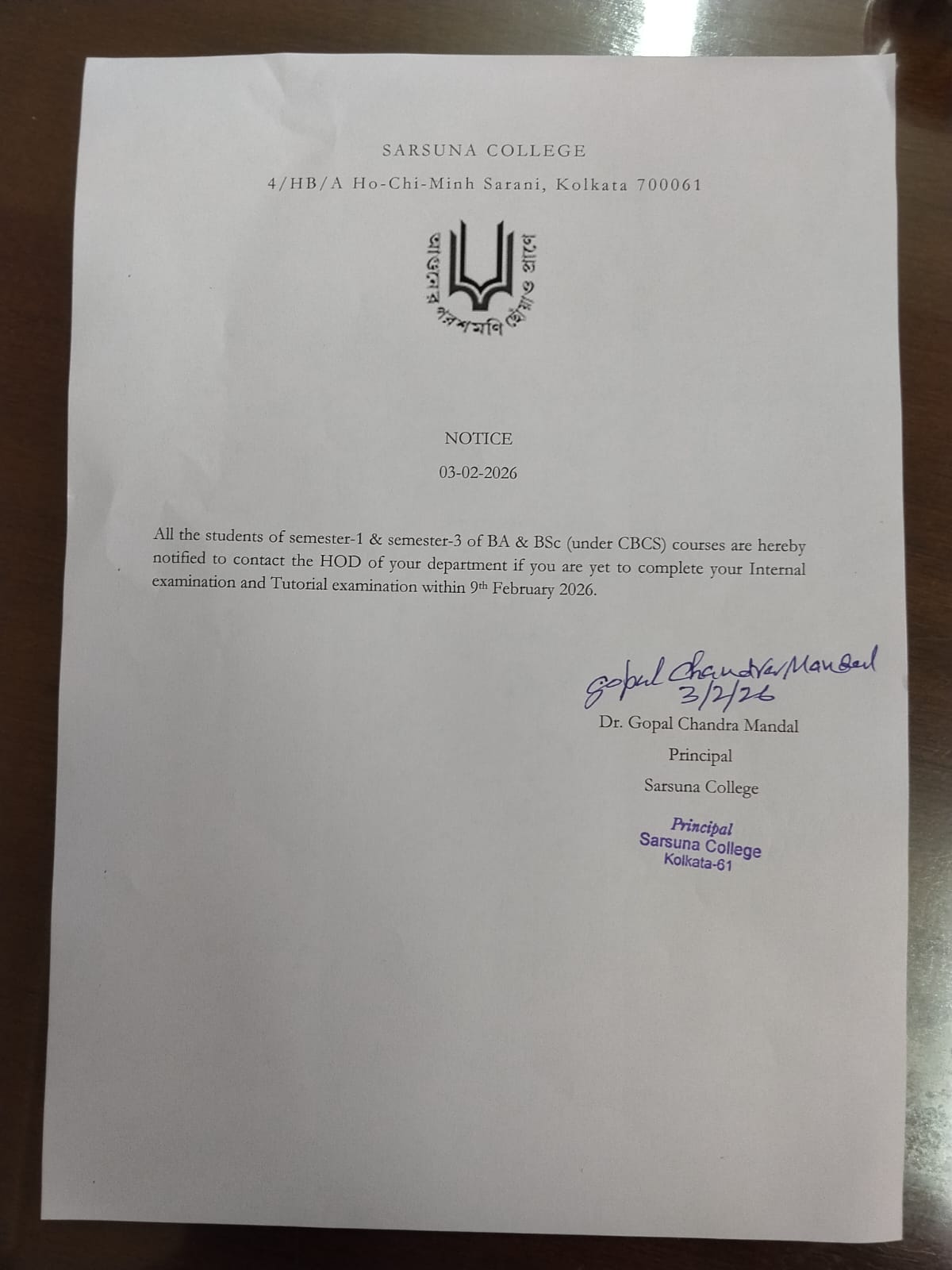 Sarsuna College has been affiliated to the University of Calcutta, Kolkata since 2000.