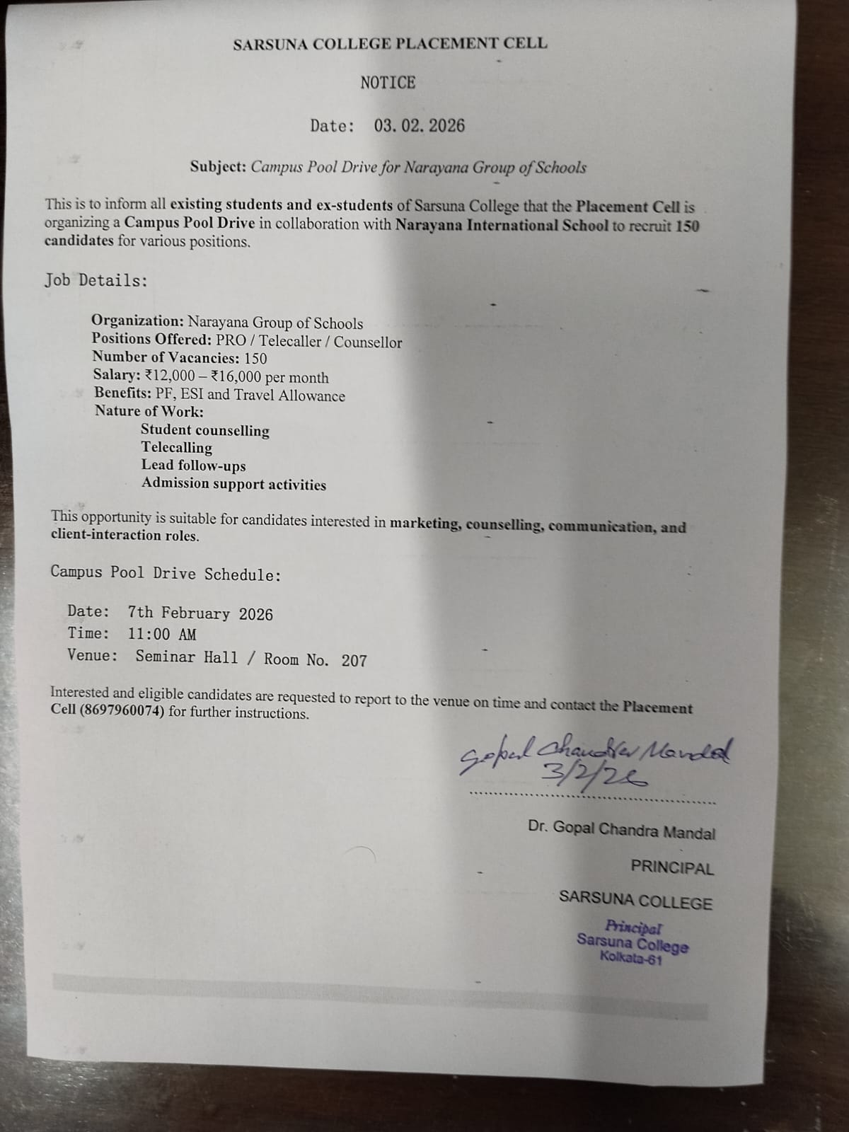 Sarsuna College, the brain child of some intellectuals who came forward to give a concrete shape to the hopes and aspirations of local common people is sprouting new branches and spreading itself to new area of higher education day by day. I am proud to be part of its glorious existence. In the constant changing of teaching- learning through its consistently good University examination results, rich infrastructure and a beautiful and congenial academic atmosphere....