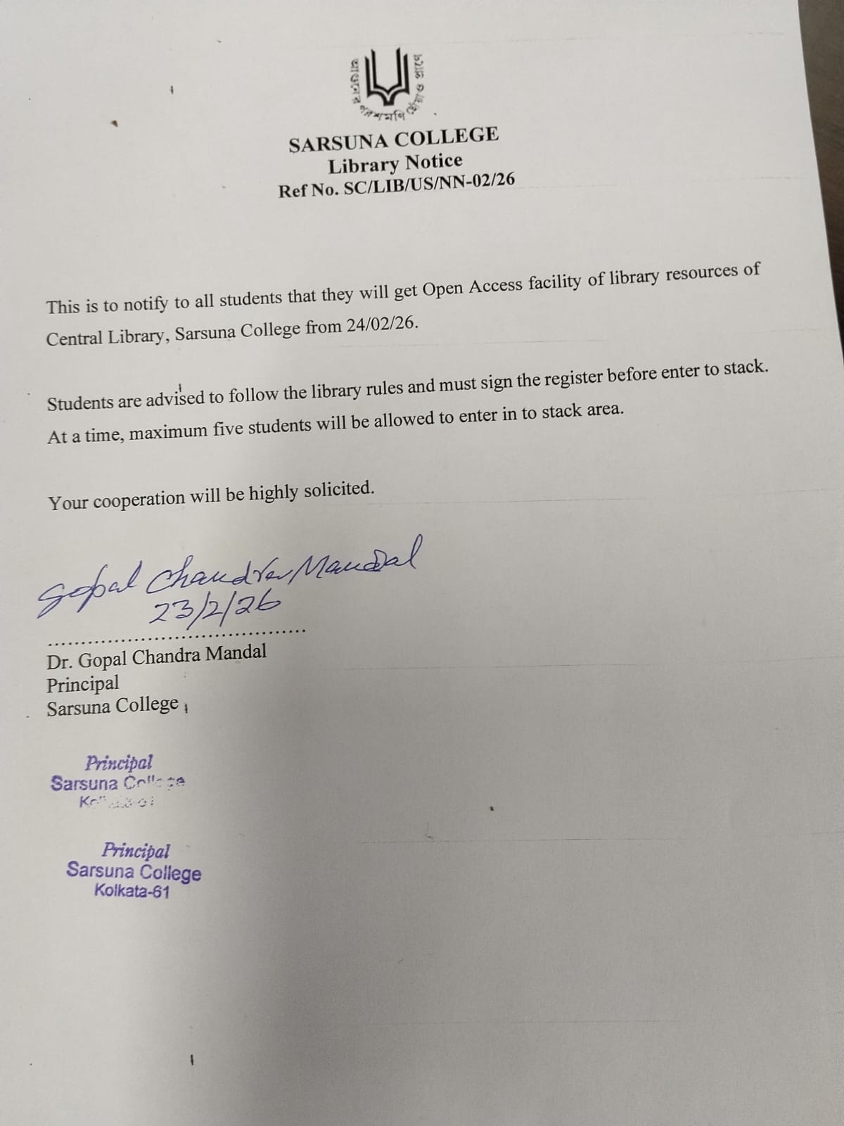 Sarsuna College, the brain child of some intellectuals who came forward to give a concrete shape to the hopes and aspirations of local common people is sprouting new branches and spreading itself to new area of higher education day by day. I am proud to be part of its glorious existence. In the constant changing of teaching- learning through its consistently good University examination results, rich infrastructure and a beautiful and congenial academic atmosphere....